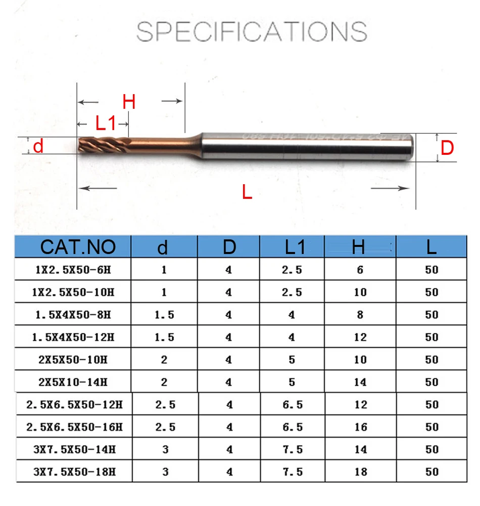 1/1.5/2/2.5/3mm HRC 55 Deep groove milling cutter Four-edge Flat End Milling Cutter for Deep Cavity Machining