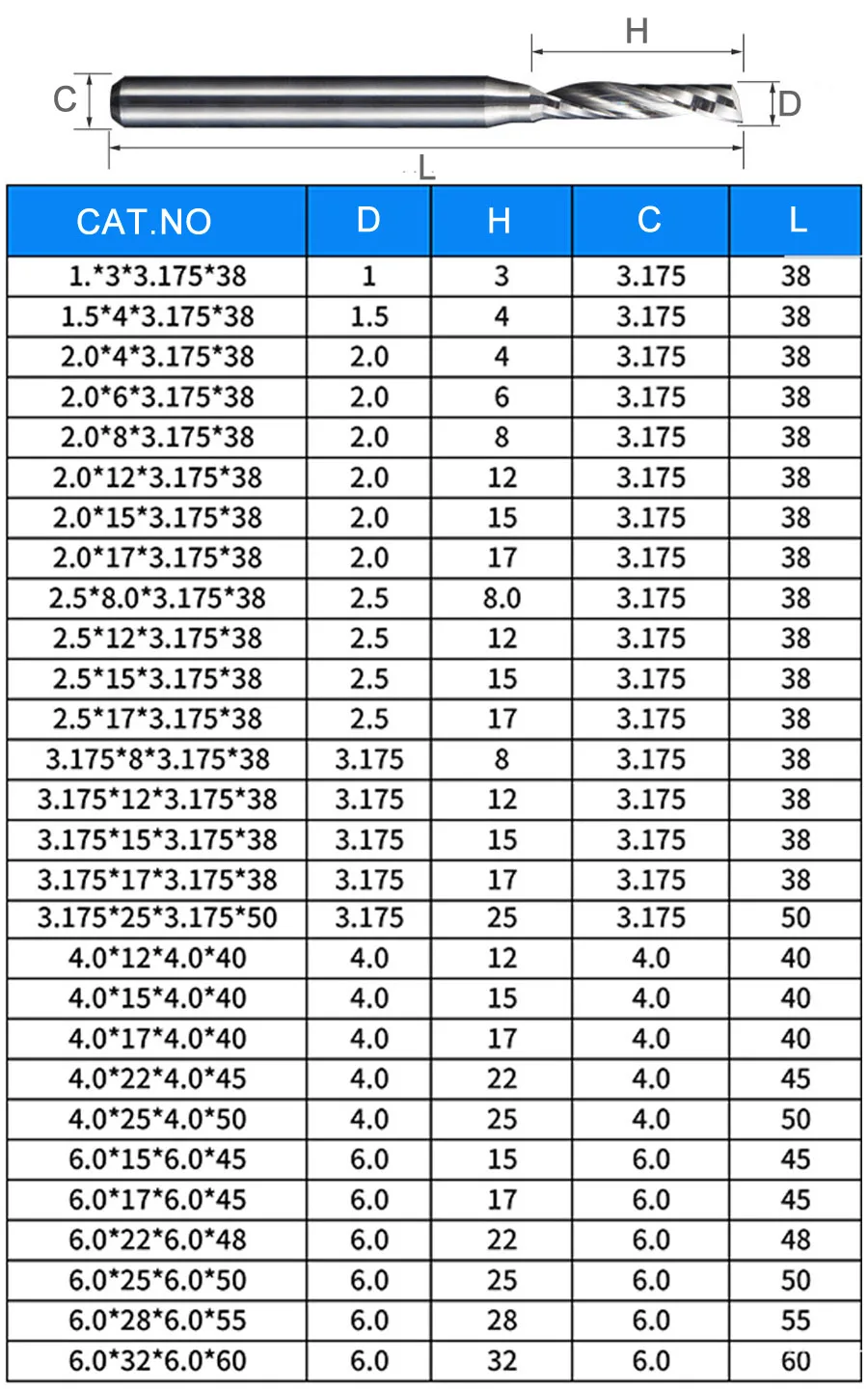 1 2 3.175/4/5/6mm Single edge spiral milling cutter acrylic PVC density board solid wood aluminum alloy carving milling cutter
