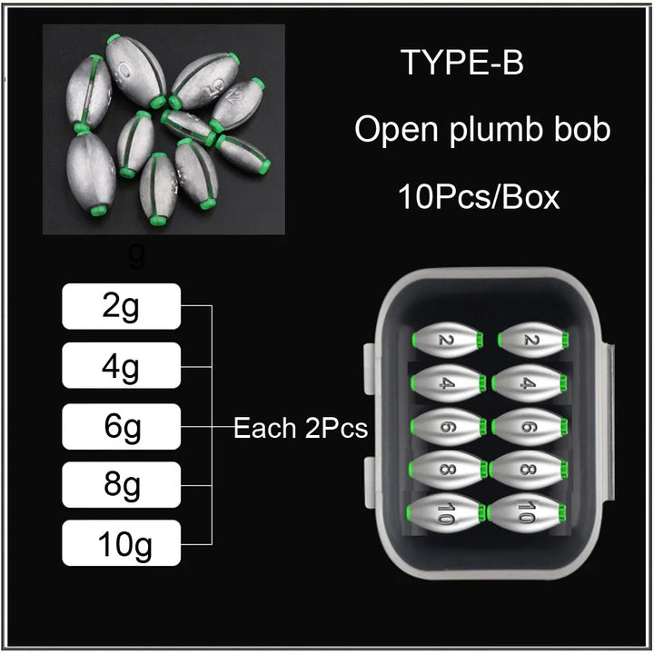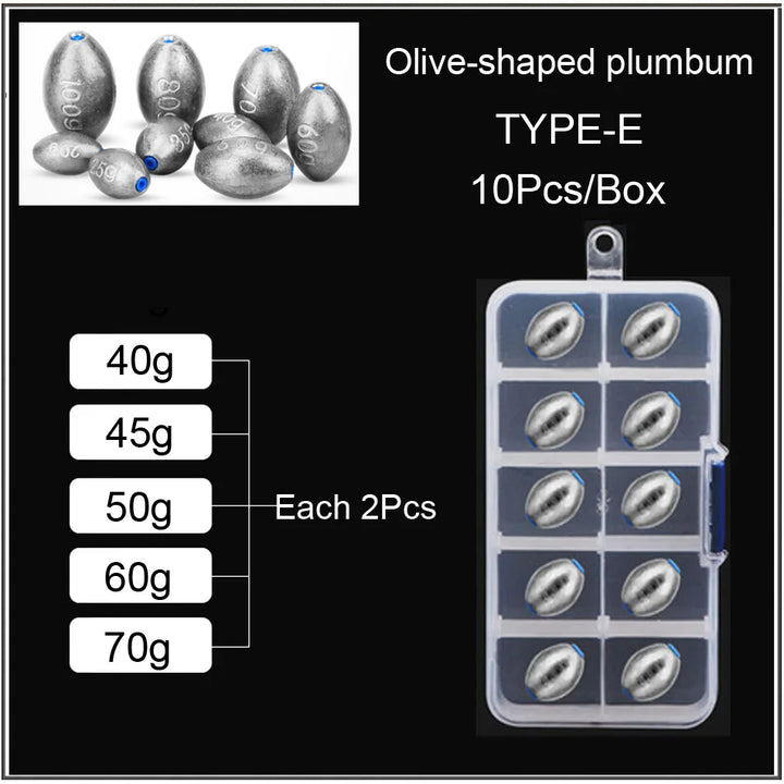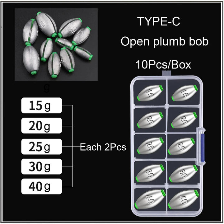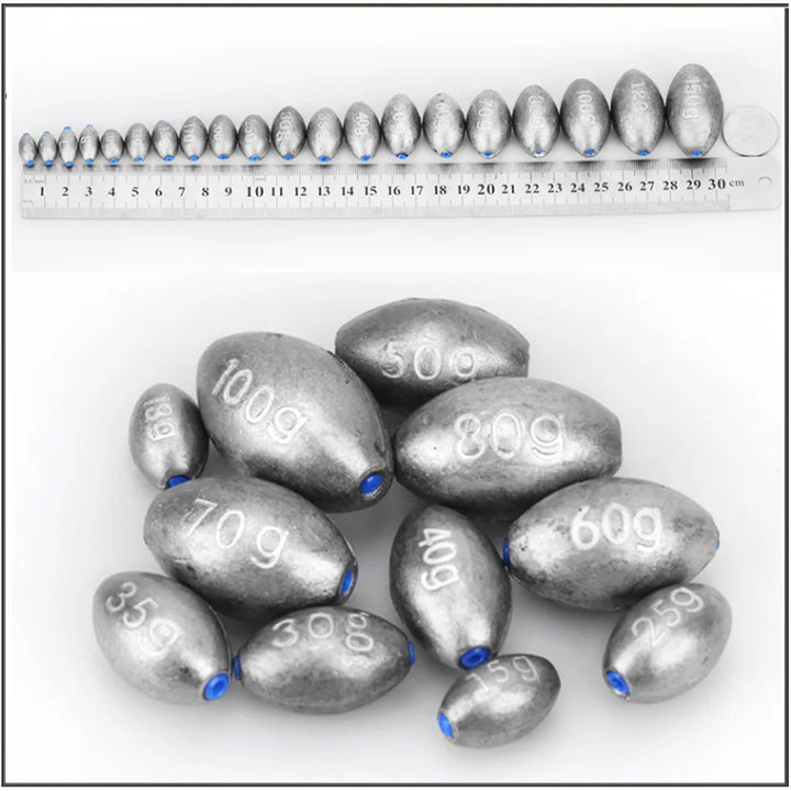 10g 20g 30g 40g Medium-pass hollow gravity plumb bob, open water drop plumb bob, olive-shaped long-range plumb bob for fishing