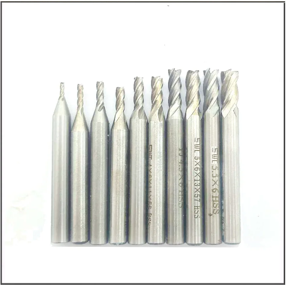 10pcs/set 1.5/2/2.5/3/3.5/4/4.5/5/5.5/6/7/8/9/10mm High Speed Steel 4 Flute End Mill Cutter HSS straight shank milling cutter