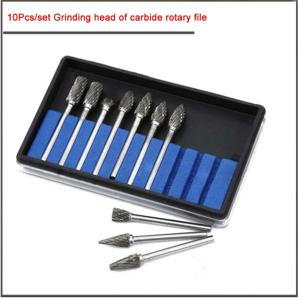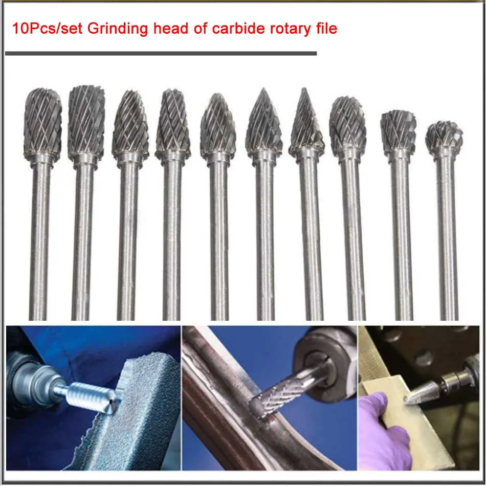 10pcs set handle 3mm Edge 6mm Carbide rotary file tungsten steel grinding head alloy metal wood mold carving milling cutter