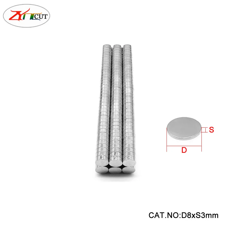 20Pcs/lots Dia 8mm thick 1 2 3 4 5 6 8mm high magnetic circular magnet rare earth permanent sheet electroplating small magnet