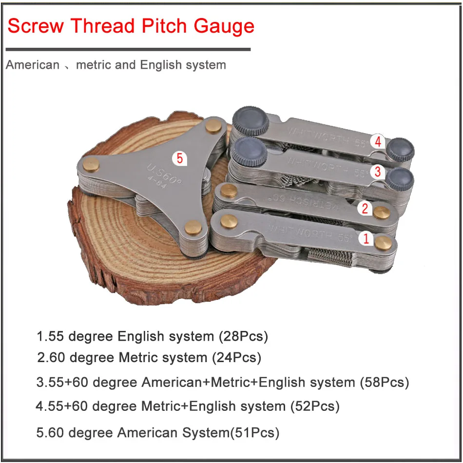 55 60 Degree Metric Screw Thread Pitch Gauge Blade Gage Pitch Folding for Measuring Gauging Tool Stainless Steel Screw Gauge