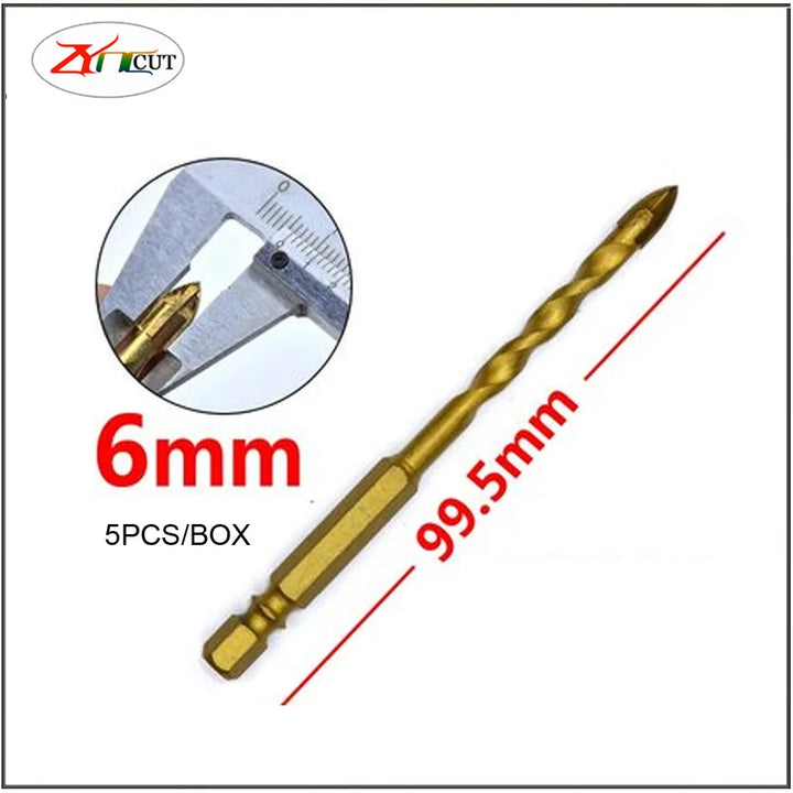 5Pcs 6 8 10 12mm Cross Hex Tile Drill Bits Set for Glass Ceramic Concrete Hole Opener Brick Hard Alloy Triangle Bit Tool Kit