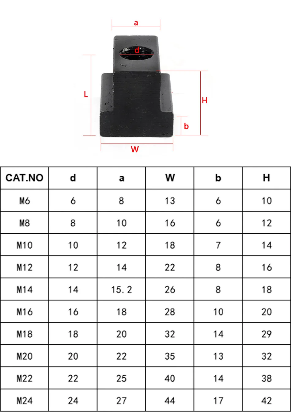 5Pcs/set M6 M8 M10 M12 M16 M20 M22 M24 T-Nut Black Oxide Finish Grade 10.9 Carbon Steel T-Slot Nut Tapped Through Slot T-nuts