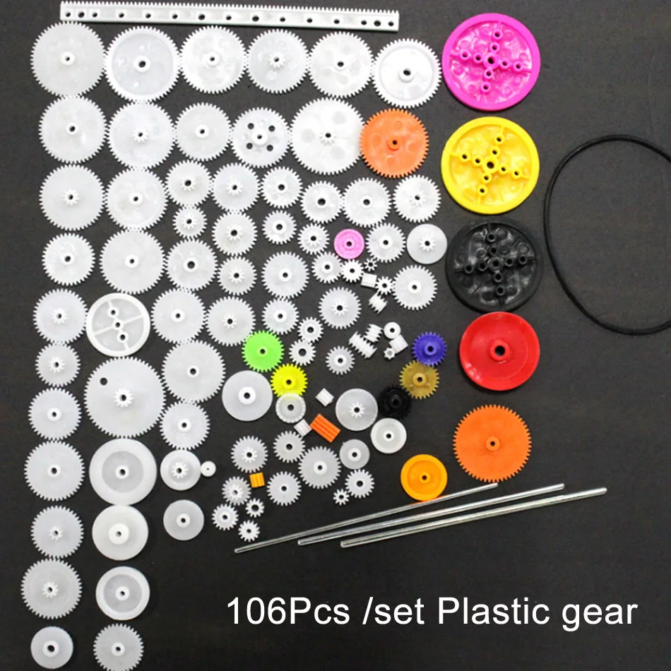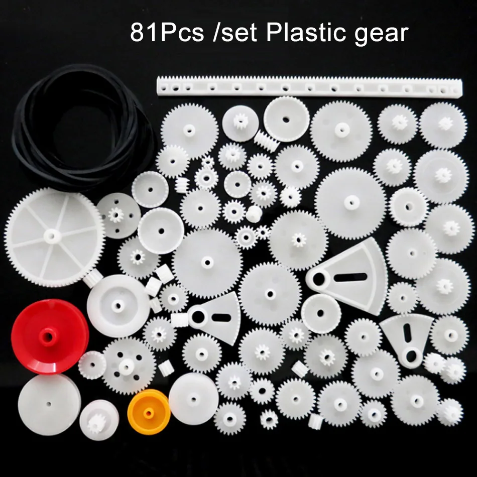 81Pcs 92Pcs 106Pcs 200Pcs set Mixed plastic gear Motor drive gear 0.5 die DIY hand made toy accessories Toy gear belt connect