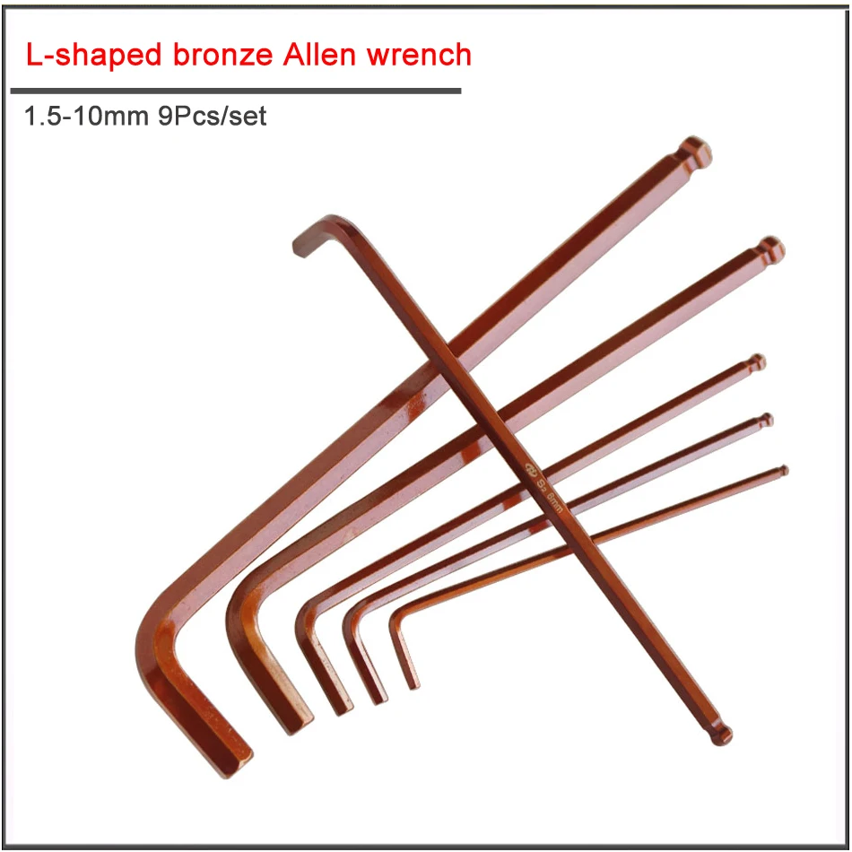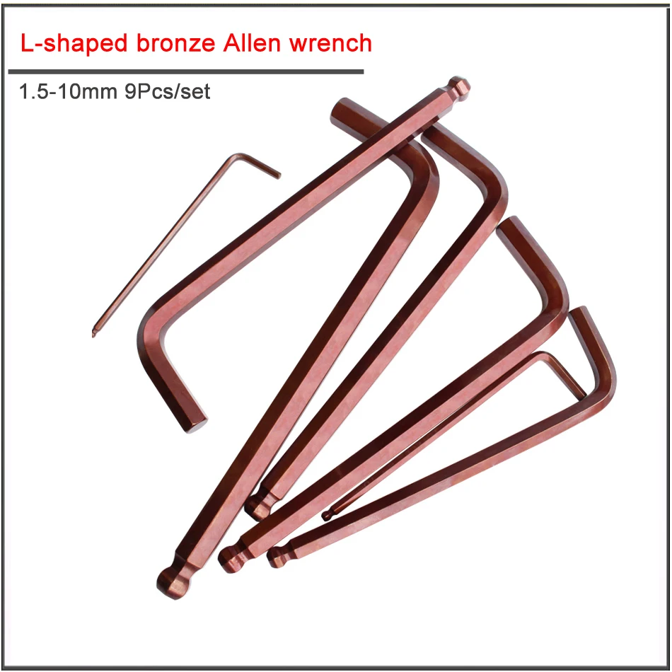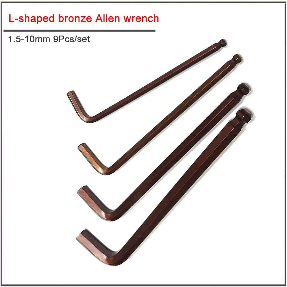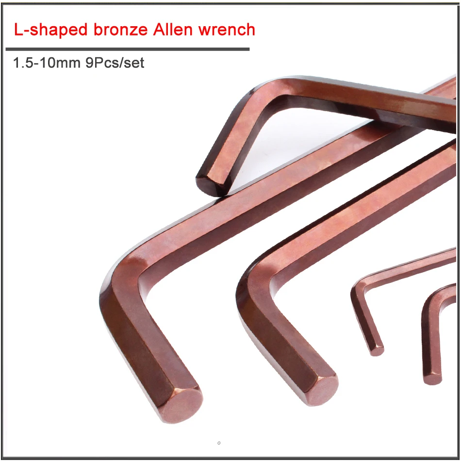 9pcs/set 1.5 2 2.5 3 4 5 6 8 10 mm High hardness bronze L-type hexagonal wrench ,High hardness bronze L-type hexagonal wrench