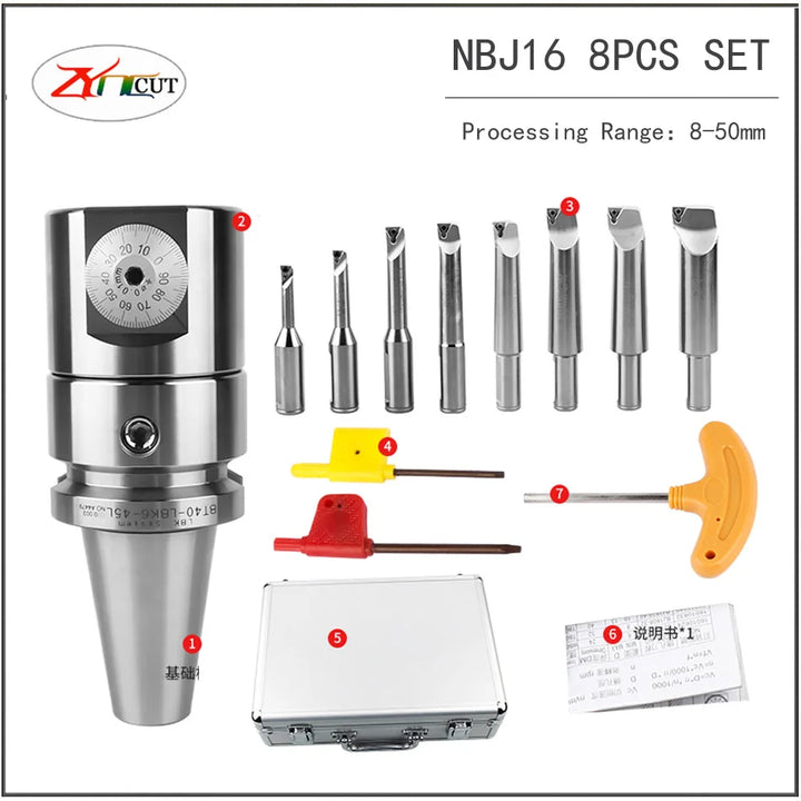 A SET BT30 BT40 BT50 NT40 MT4-NBJ16-8PCS 8-51mm precision boring system Adjustable single edged boring cutter Hole cutting tool