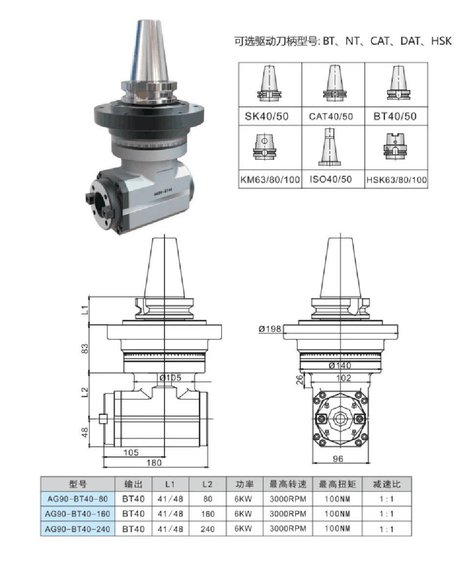BT30-AG90-BT30-70, BT30-AG90-BT30-150, BT40-AG90-BT40-80, BT40-AG90-BT40-160, BT50-AG90-BT50-80L, BT40-AG90-BT40x2-80, BT40-AG90-BT40x2-160, BT40-AG90-ER32x2-60, BT40-AG90-ER32x2-130, BT50-AG90-BT40-80L, SK50-AG90-BT40-80L |