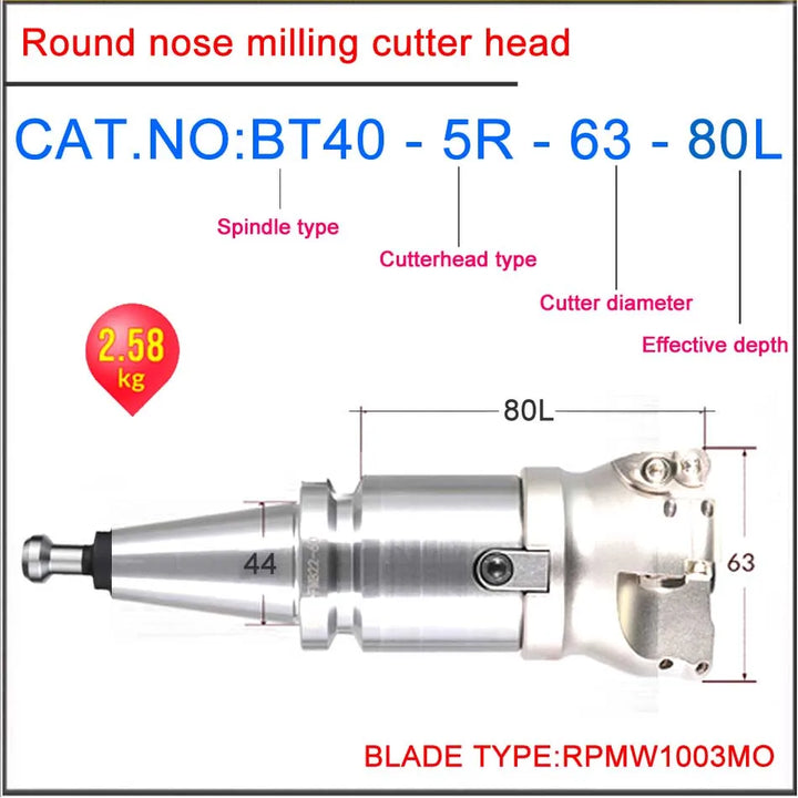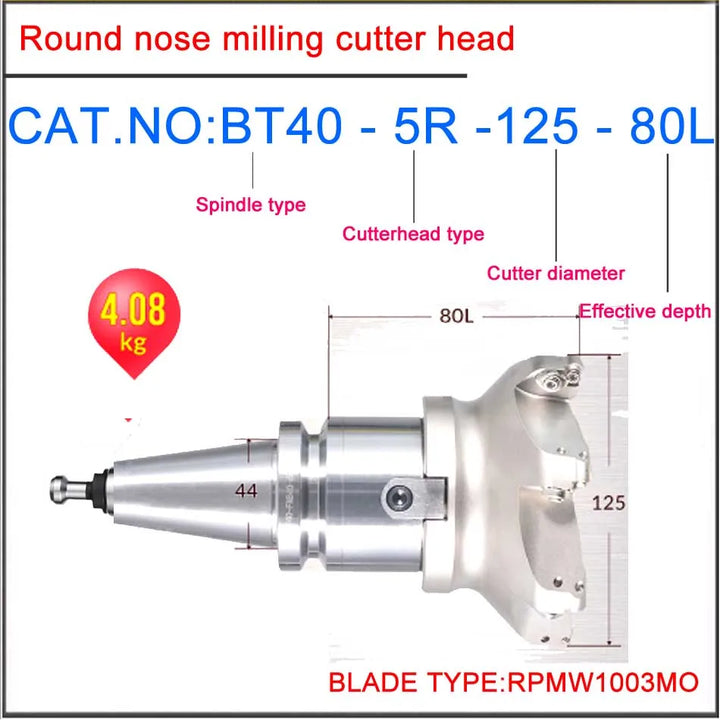BT30 BT40-EMR 5R 50 63 80 100 125 160mm R5 Plane profiling round nose milling cutter head ,End milling cutter with rough fillet