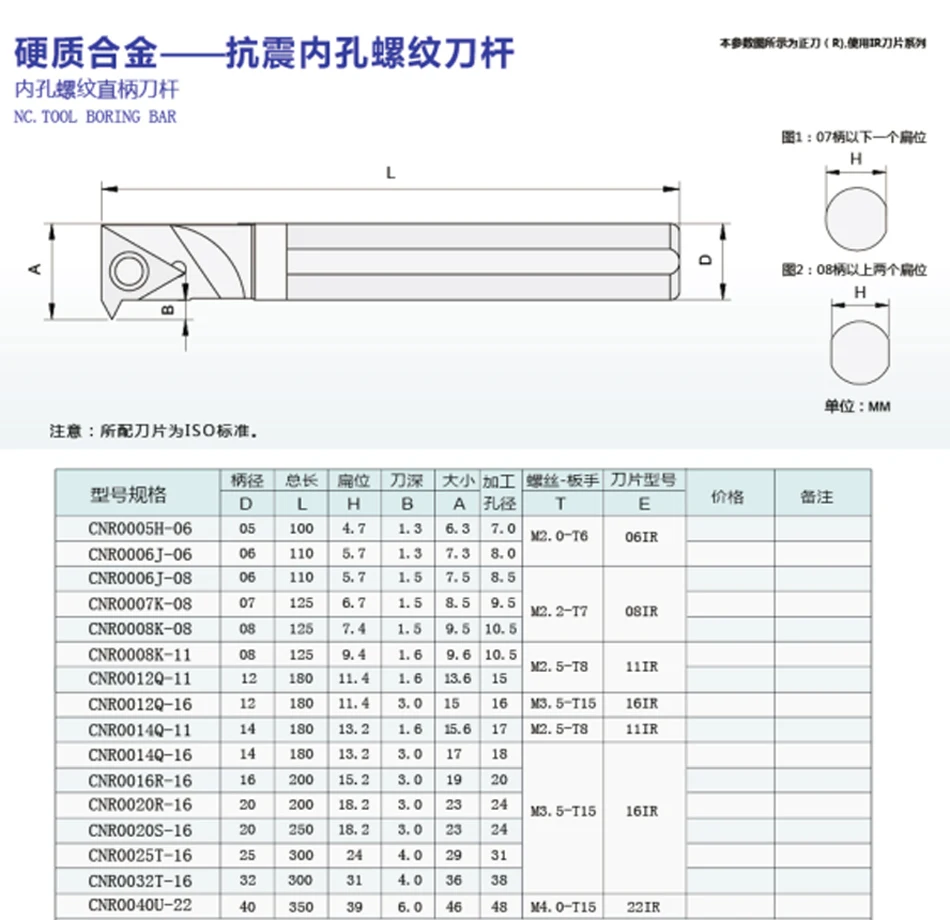 CNR0006J CNR0008K CNR0012Q CNR0016R Solid tungsten steel hard alloy anti-seismic internal thread turning tool shank