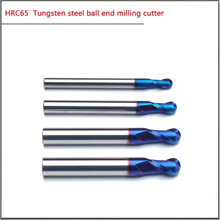 HRC65 milling R1/R2/R3/R4/R5/R6/R8/R10 Two-edge Blue nano coating ball end milling cutter for processing high hardness materials
