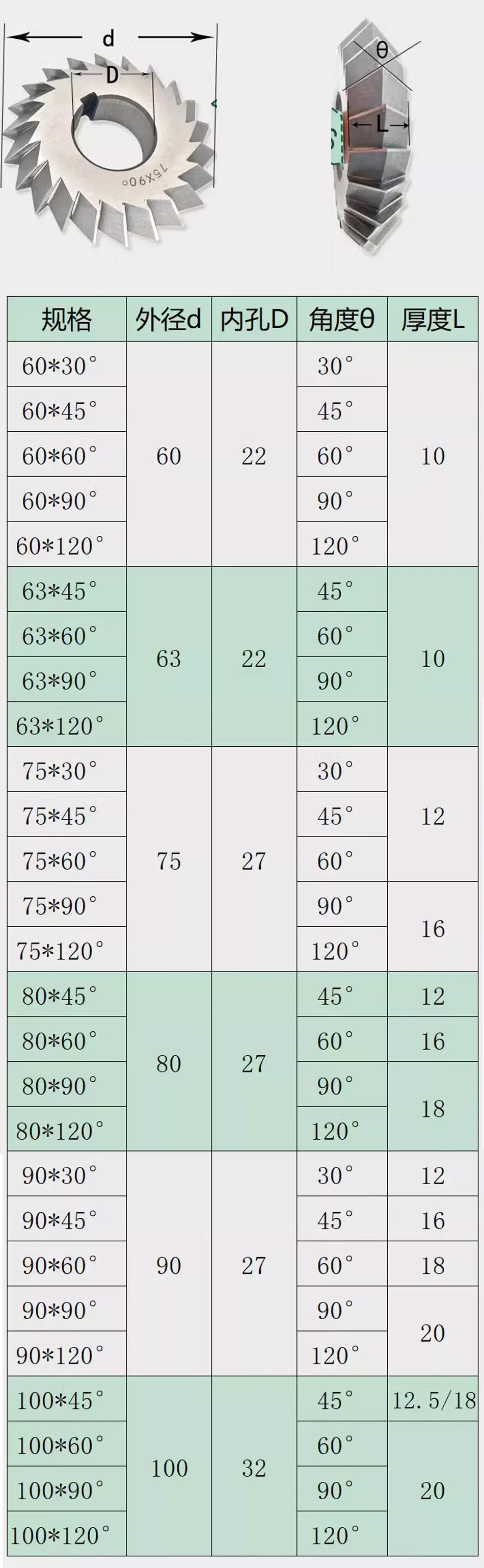 HSS Angle milling cutter Dia 60 75 90 100mm Degree 30 45 60 90 V-groove double angle milling cutter symmetrical milling cutter