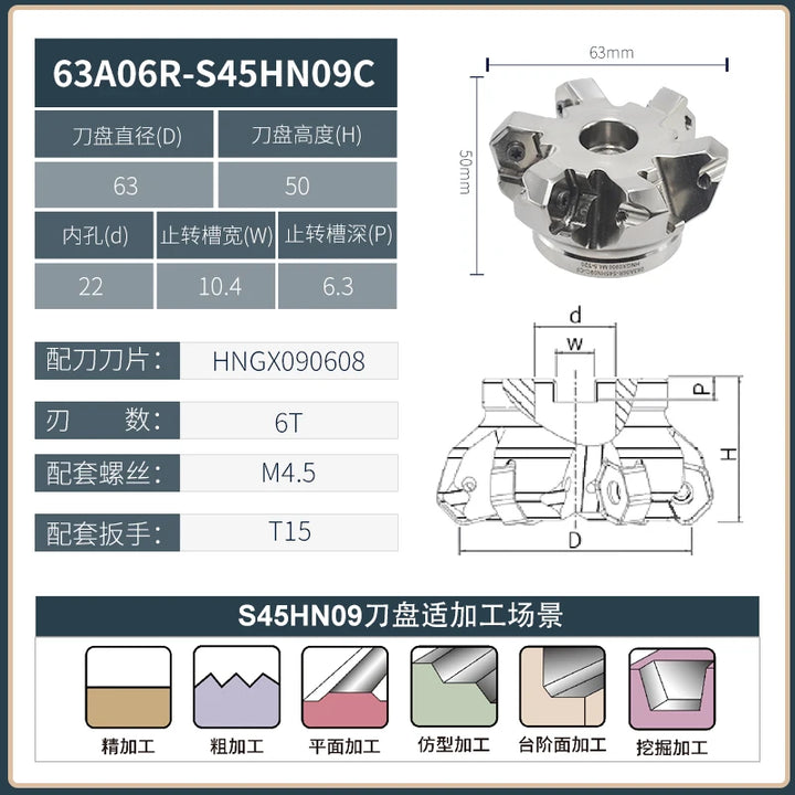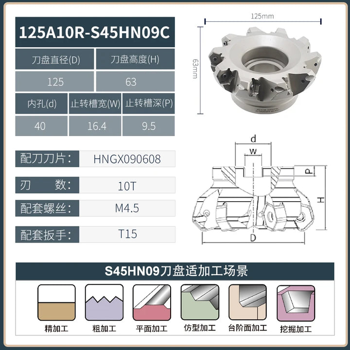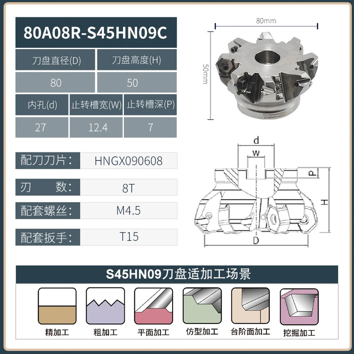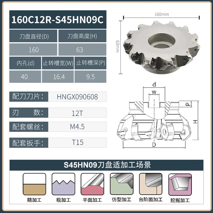 KSHR CNC Heavy Cutting milling cutter disc Rough machining center machine seismic resistant 12 angle double-sided 45 degree