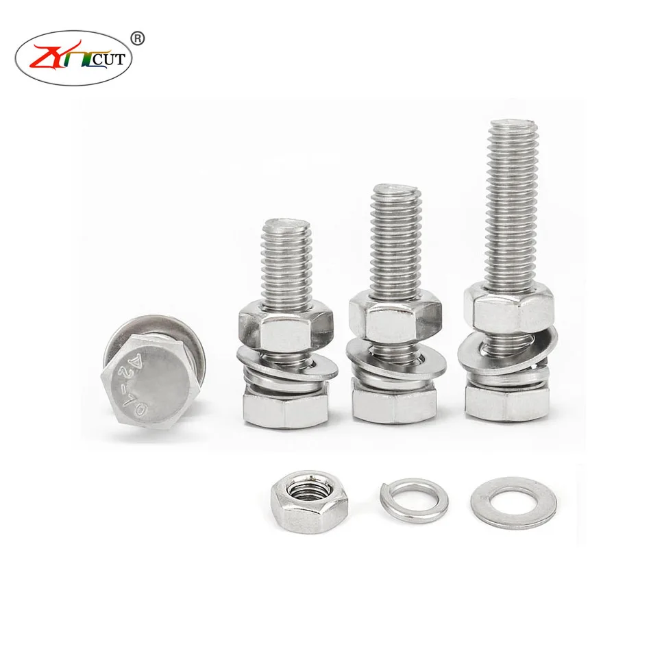 M4 M5 M6 M8 M10 M12 304Stainless Steel Hexagon Screw Set,anticorrosive hexagon extended bolt with nut and Gasket Fastening screw