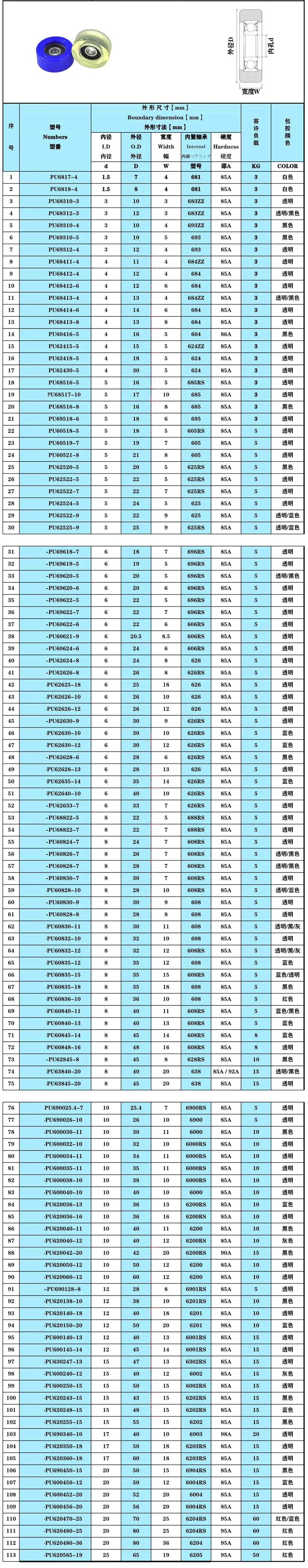 PU604 605 606 608 Polyurethane coated bearing Silent wear-resistant PU roller guide roller bearing Rubber roller bearing