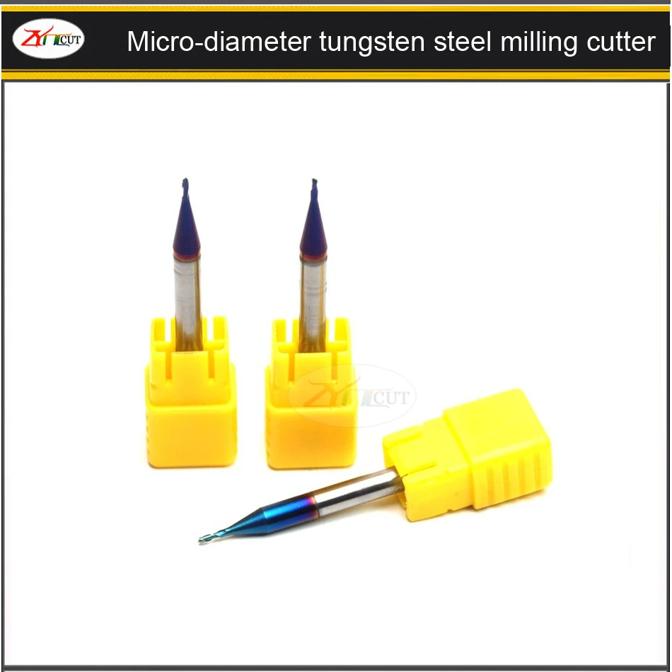 R0.2/0.3/.4/0.5/0.6/0.7/0.8/0.9mm HRC65 2 Flute Small diameter tungsten steel flat end milling cutter ball end milling cutter