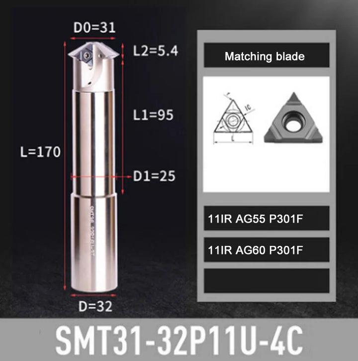 SMT 11IR 16IR Metric British Thread milling cutter bar, SRW M20 M24 M36 M42 split milling cutter for deep hole thread processing