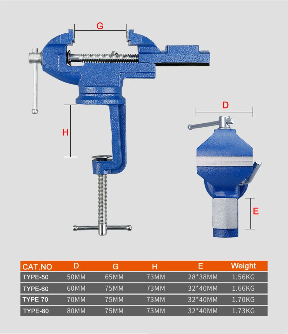 Table Vice TYPE 50 60 70mm 360 degree universal rotating heavy mini table vise, Universal rotating simple vise,Mini vise